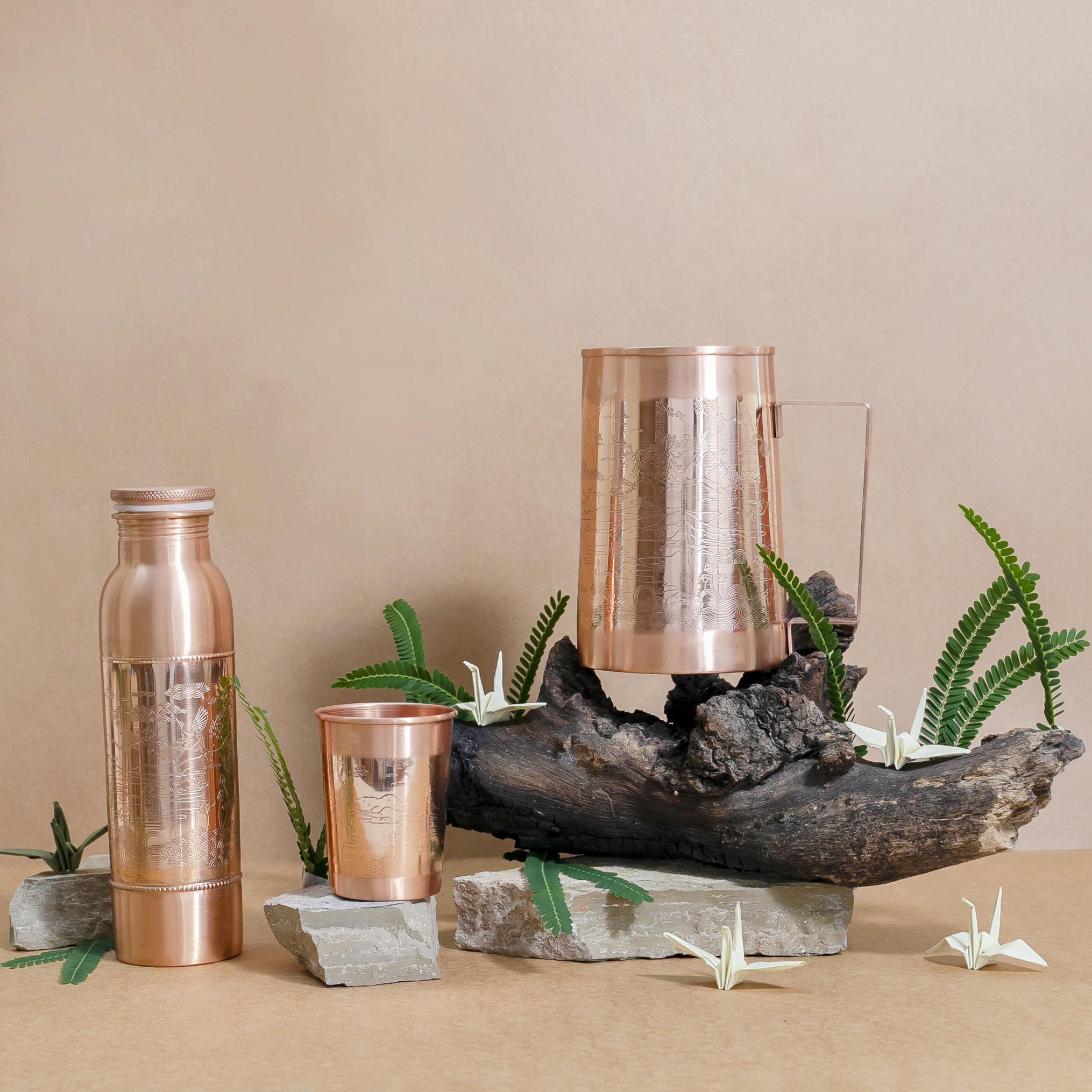 Ajurvéda již od starověku obhajuje výhody pití vody z měděných nádob. Podle ajurvédy se při uchovávání vody v měděné nádobě po dobu 6-8 hodin (nejlépe přes noc) voda stává přirozeně zásaditou. Tato měděná voda neboli Tamra Jal je známá svými vitálními účinky, které navozují rovnováhu ve třech dóšách (váta, kapha a pitta) těla. Měděné nádoby Forrest & Love jsou vyrobeny z čisté mědi, a poskytují tak všechny výhody Tamra Jal.